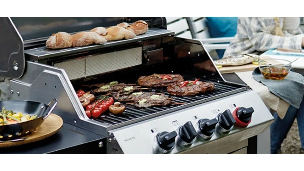 For starters the 3 gas burners can be controlled independently from each other and are then adjustable throughout the cooking time, featuring a Piezo ignition to fire up each burner safely with just a touch of the button. For the steak lovers the Monroe Pro 3 features a turbo zone, an infrared burner that reaches rapid searing temperatures of 400°C in super quick time. Handy flame tamers are fitted to prevent unwanted flare ups.
