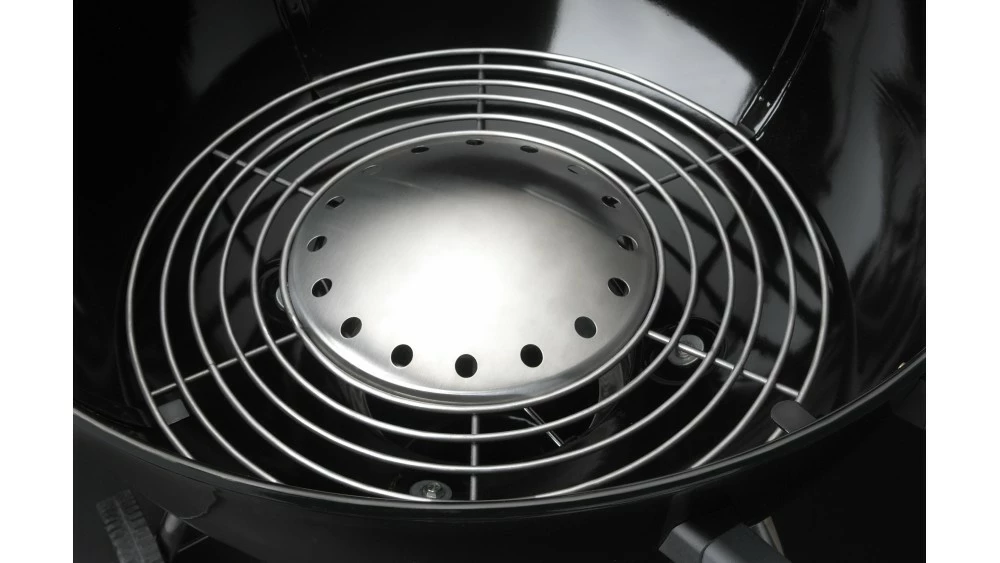 In the heavy gauge porcelain bowl the PRO22K BBQ features a stainless steel heat diffuser which radiates the heat giving ease to the heat management on the BBQ. The diffuser sit on top of the heavy duty charcoal grate which keeps the charcoal away from the bottom of the bowl allowing for perfect air flow around the unit. Once the charcoal is burned the ashes fall directly into the heavy gauge ash catcher making cleaning very easy.