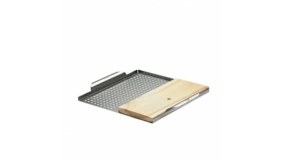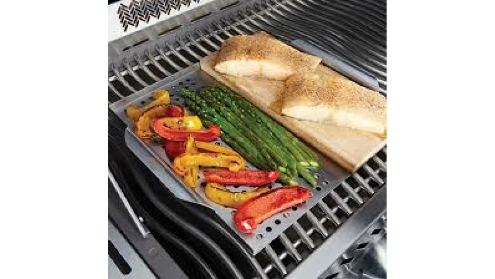 This Stainless Steel Multi-Functional Grill Topper with Cedar Plank by Napoleon is designed for your grilling needs. The perforated side makes grilling vegetables a breeze, preventing your veg from falling through the grids while they get that great grilled flavor. The flat side of the Stainless Steel Multi-Functional Grill Topper is perfect for searing delicious foods. This also doubles as a holder for the included cedar plank so you never have to worry about lighting another plank on fire. Stainless steel construction makes this grill accessory durable and easy to clean. You can easily place and remove the Stainless Steel Multi-Functional Grill Topper on the grill with the built-in handles. Just remember to wear heat resistant gloves when itβs hot. Expand the possibilities of your grill with the Napoleon Stainless Steel Multi-Functional Grill Topper.